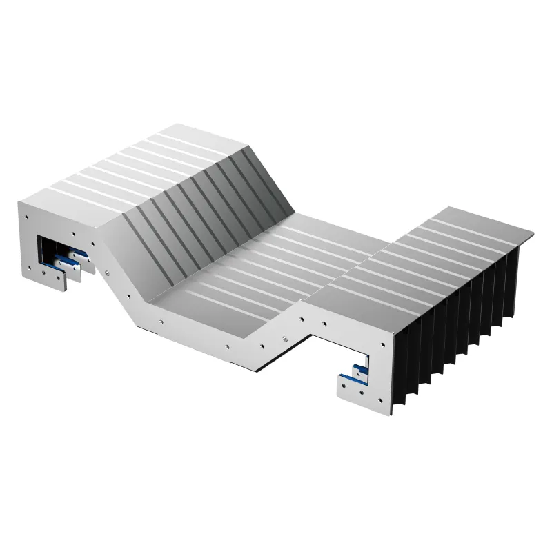 Тяжелые станки с ЧПУ: такие как вертикальные обрабатывающие центры, горизонтальные расточные и фрезерные станки, портальные фрезерные станки и т.д., при обработке образуется большое количество металлической стружки (например, стальная стружка, чугунная стружка), и часто используются эмульсии, масла для резки и другие охлаждающие жидкости, бронированный защитный кожух металлического внешнего слоя может блокировать высокоскоростные брызги стружки, внутренний слой гибкой структуры направляющей может быть адаптирован к возвратно-поступательному движению (перемещение до нескольких метров).
